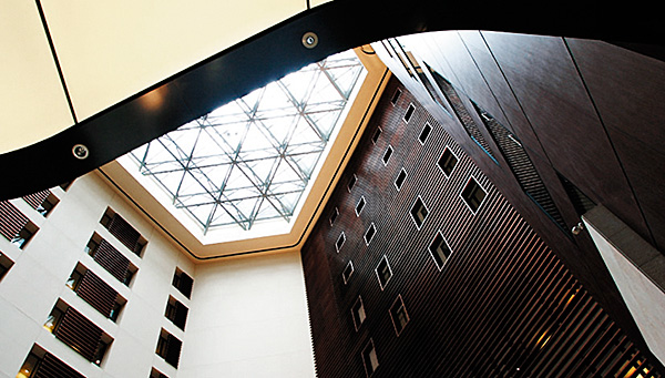 Guestrooms project towards Tokyo’s magnificent skyline, connecting guests to the world via broadband internet access, while curved forms and fabric-covered walls cocoon from the maelstrom of activity in the district below. The Park Hotel Tokyo also shows respect for local traditions of nature, translated in the hotel’s glass-roofed atrium. A soothing haven of trees and greenery, it stretches between the building’s 25th and 34th floors, creating a well of warming sunlight that augments.