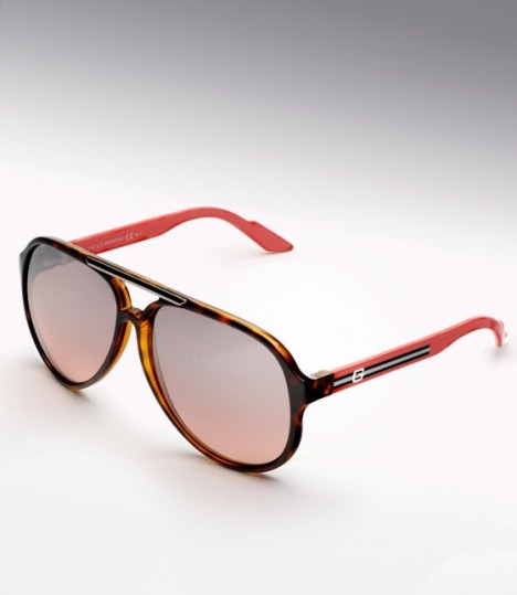 The House of Gucci has come out with a new collection of “heritage” aviator sunglasses. The three new models (unisex 1627/S, men’s 1622/S, and women’s 3108/S) all feature the red and green Gucci stripe and “G” logo on both temples. The sunglasses come with a special edition leather case and carrying pouch and the case has a wide signature stripe while the pouch has a matching strap.