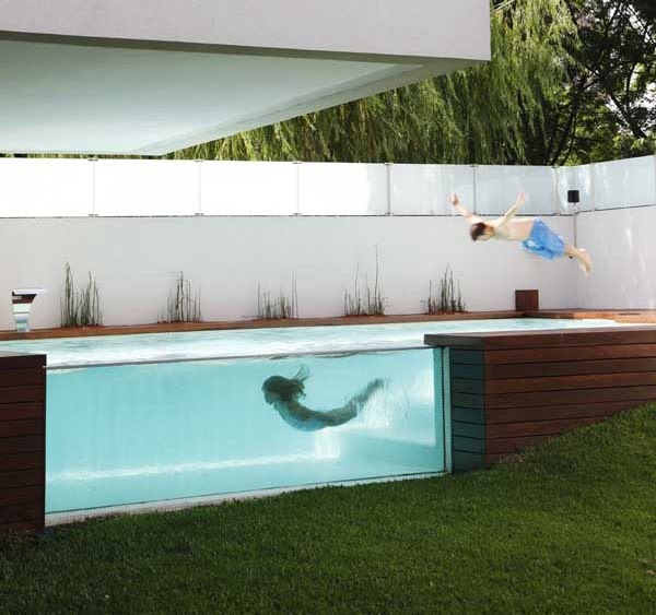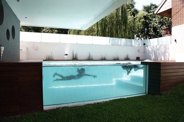 Designed by Andres Remy Architects, this modern above-ground outdoor pool in Devoto, Argentina is quite appetising for a summer pool party. The pool does a phenomenal job combining the best of both the natural and urban landscape. When planning the placement of the swimming pool, the architects studied the path of the sun carefully. The pool is elevated from the ground creating a glass wall that allows views from within and outside. Even people inside the house can see the action in the pool while lounging on the sofa.