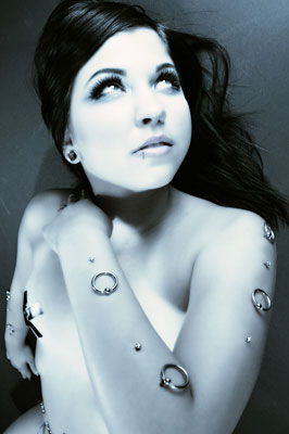 I personally am much of a tattoo person, as opposed to piercings, (I’ve got 2 piercings, and 13 tattoos) but when I caught some of the pics different styles of piercings, I was intrigued. The style of back peircings with weaved ribbons caught my attention the most. (I love a woman in a coursette). Photos courtesy of Prick Magazine.