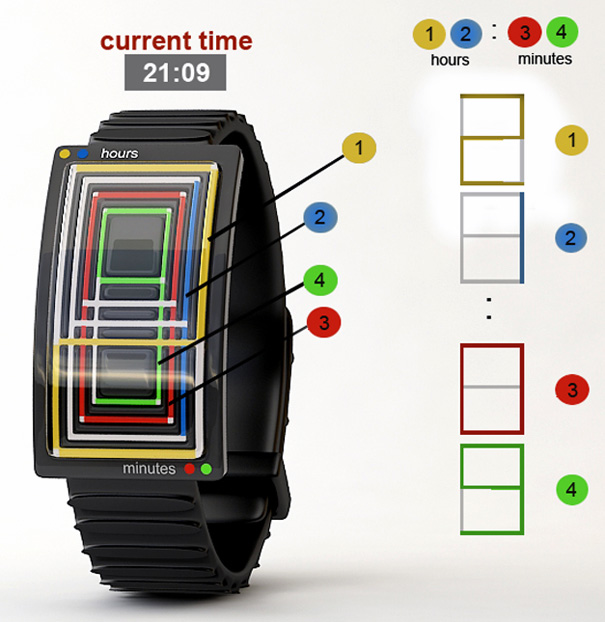 Its well known that I’m quite the watch enthusiest/collector, (a habit I picked up from my father), and when I saw this most recent watch, I knew it was only befitting that I confuse you guys with Andy Kurovets’ Maze Of Time. The Maze Of Time watch uses colors in a kaleidoscopic way to represent the time. So when you see a chaotic yellow line below, it’s actually the number “1”. Blue is the number “2”, red color stands for “3”, and “4” corresponds to the green etc. Kinda TokyoFlash-esque and time to get your grey cells working, not to mention it looks super ill.