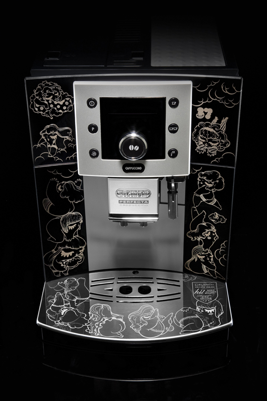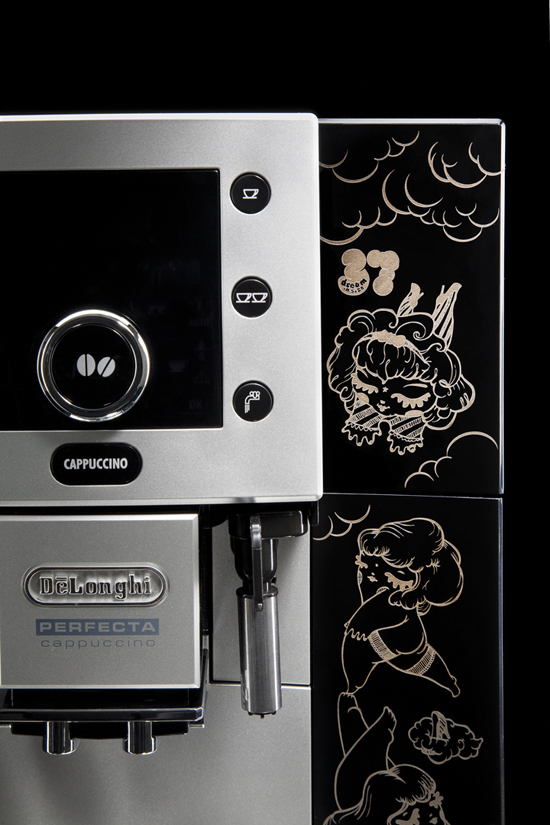 I’m not much of a coffee person, but when I layed eyes on this capachino maker, with custom engraved Maria Vittoria Benatti artwork, I knew it was one of the sickest coffee makers I’d ever seen.