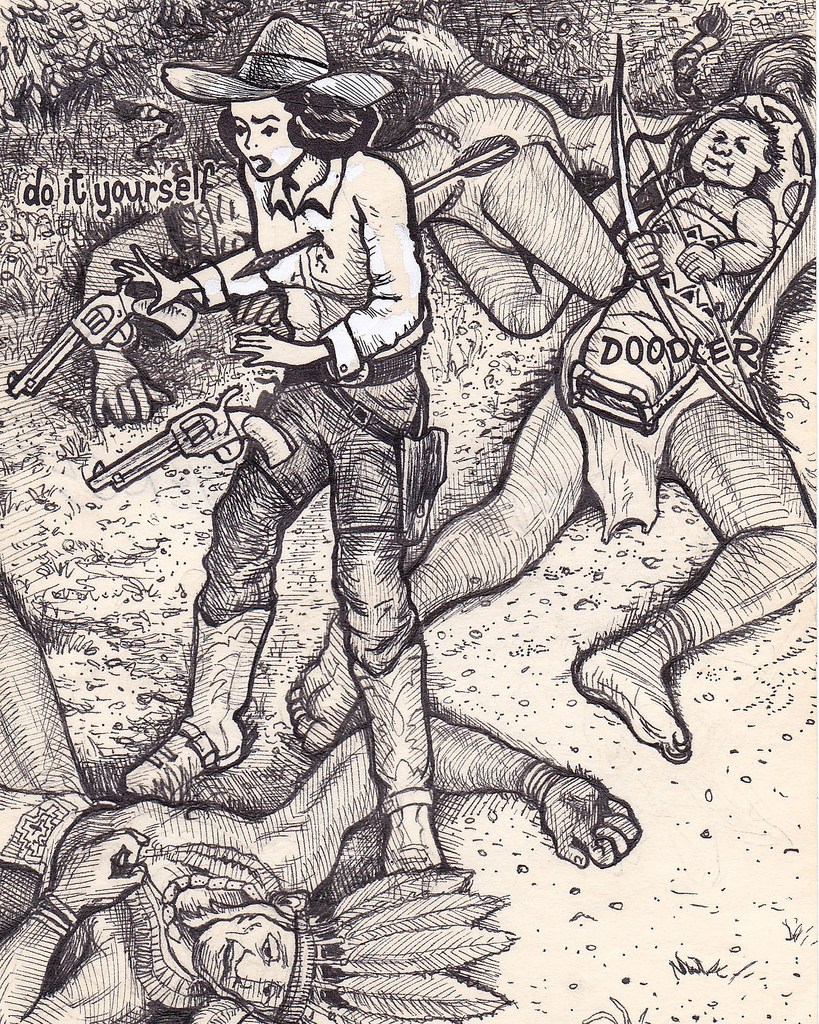 So I am many things in this world, but an illustrator is not one of them. However, David Jablow is just that, and an impressive one no less. His Flickr stream is hands down one of the most impressive I’ve seen in quite some time. He’s taken a 1950′s style Peggy Sue magazine model and put different worlds around her using a single template. The creativity and artistic detail are spectacular. Some of these are semi-NSFW, so view at your own discretion. And if your bad-ass enough, print the template and try some yourself.