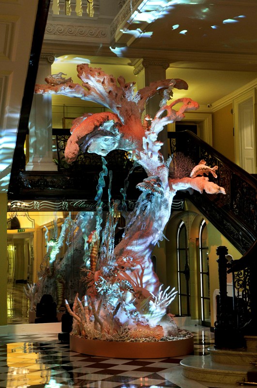 This festive season, Claridge’s, the art-deco gem will be transformed to an oceanic paradise with Galliano’s extraordinary creation. Commenting on the collaboration, Dior Creative Director John Galliano says, “The majestic beauty of Claridge’s Art Deco interiors never fails to inspire me. I am thrilled to be invited to create a new tree for Christmas at Claridge’s. I wanted to create an underwater fantasy and have mixed pink corals, seahorses, anemones and jellyfish, all glinting like gem stones, swimming amidst the silver leaves.”