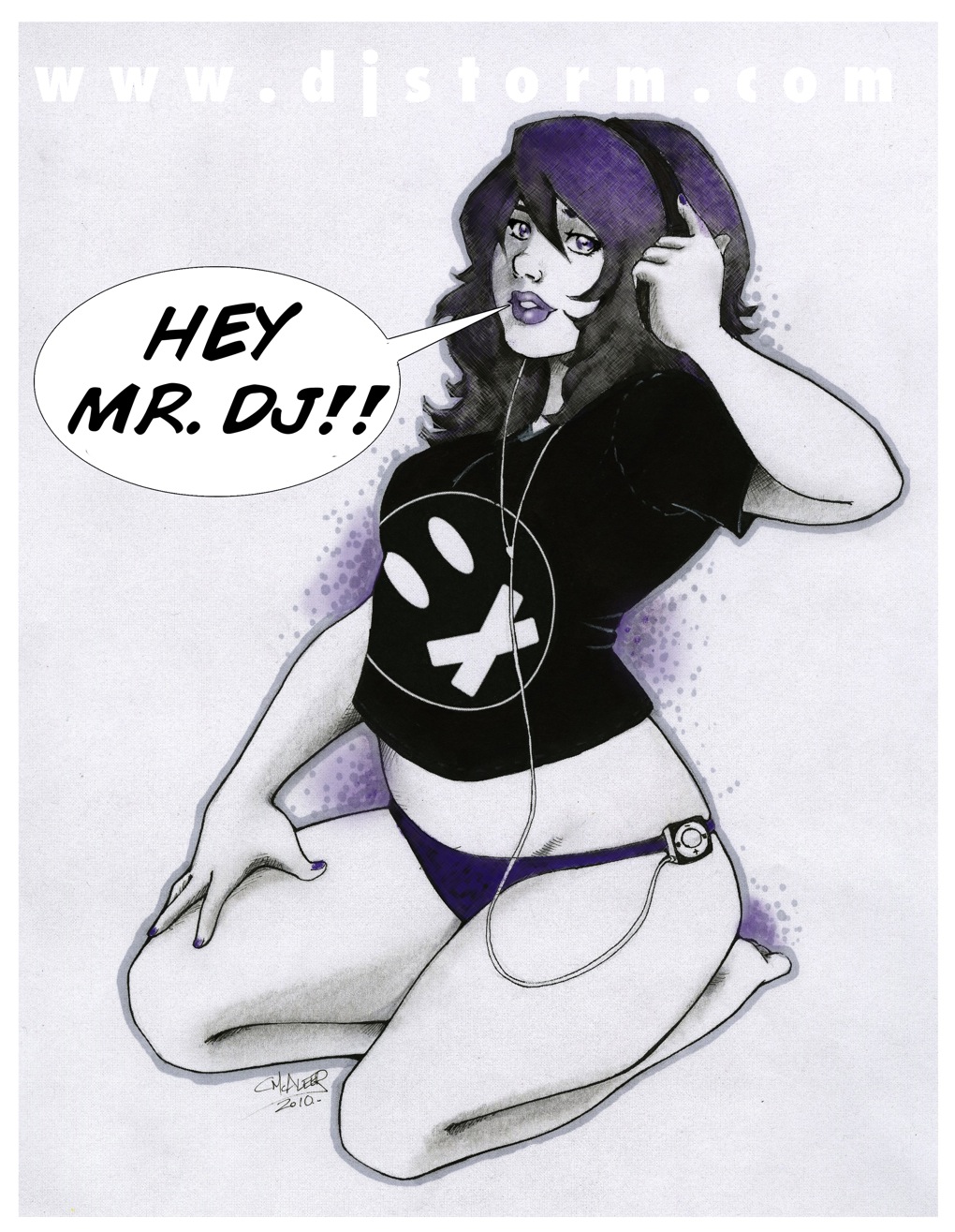 So a long time ago, I posted some super basic sketches up on twitter by the illustrator Christine McAleer, and it was announced that some sort of collaboration between us was on its way. The drawings were roughs of advertisements for DJ Storm female t-shirts that will be released around new years. I was quite enthusiastic to see how great the finished products would come out when I saw the women they were referenced from, (the first and last of the ladies were referenced from close friends of mine, while the picture above bears a stunning resemblance to the lovely Csilla Ray). I’ve already gotten numerous request by various girls, and I have all those accounted for. But if your interested in one, and you wear shirts between small and extra large, send me a direct message on twitter @YoungStark. As for the illustrations, I’d like to thank Ms. McAleer again for blessing me with some of her time and artwork.