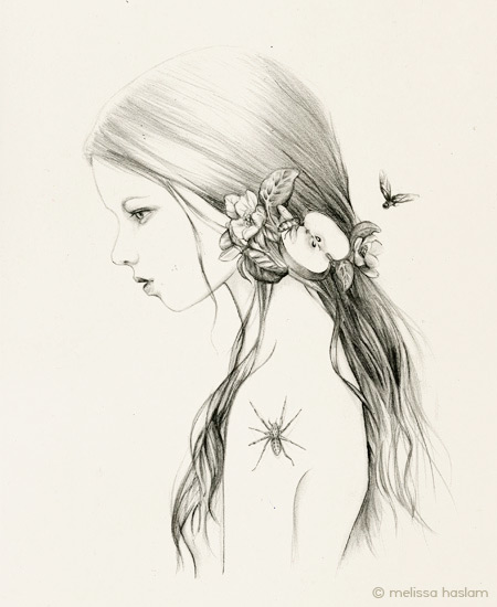 I come across tons of artists of all types, forms, and calibers in my line of work, but I was especially impressed by the illustrations of one Melissa Haslam. Her work demonstrates a rare innocence that’s almost childlike, and is very striking. Her work shows a depth and style that doesn’t normally come across in most other illustrations of the same type from other artists. Check the method below.