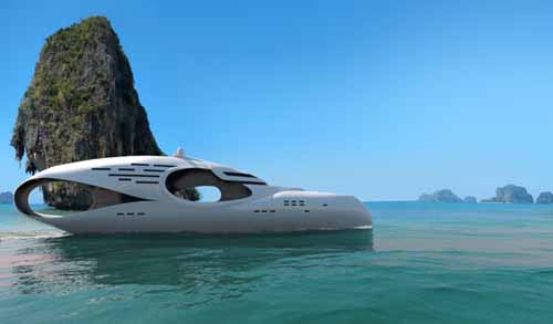 I’m still a bit confused as to weather the Oculus is a boat or just a strangely shaped object created for the infinite pleasure of rich people. What I can say for sure is the Olucus is a very futuristic looking yacht from Schpfer Yachts. Its 250-foot, can accommodate 12 guests and can travel at speeds up to 25 knots. It got a double-height dining room, an elevator and a special area for ‘the owner’ + a lot more. If that design isn’t striking enough, then can you always opt for the bigger and more spacious designed Infinitas. It’s 300-foot with a massive recreational pool area in the middle of the ship. It accommodates 12 guests, and pretty much got everything else you might need. Including a living room on the main deck, a dining room on the other side of the pool area. A sky bridge, kitchen, storage, helicopter platform and a third deck for the owner. Its an entire brick of incredible smothered in awesome sauce.