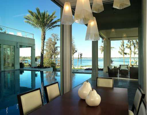 Today, I came across yet another contemporary masterpiece, this one set on a 0.93 acre parcel in a sought-after Windermere location. The lakefront home, of over 9,000 square feet, offers high-end finishes and detailing throughout, such as the Calcutta gold marble flooring in the master and Swarovski crystal insets on the fireplace. (Baller). The 4-year-old home was very tastefully designed, influenced by multiple cultures and styles to showcase true harmony. Featuring 5 bedrooms and 8 bathrooms, the award-winning residence will impress even the most discerning buyer, with it’s fine, unique amenities inside and out. These include a swimming pool, ample deck space, a floating glass elevator, dock, and sweeping views of the lake, which is right out your back door.