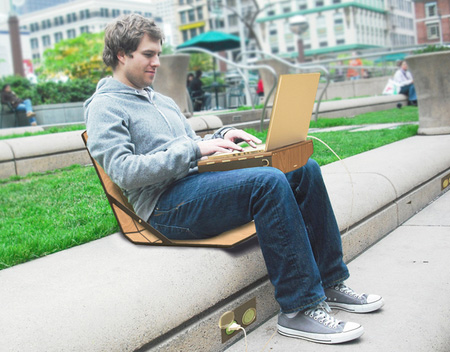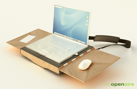 Openaire is a hybrid of a laptop case, portable workstation, and a chair. Designed by Beau and Nick Trincia, Openaire consists of a laptop sleeve that acts as a desk and a protective shell that functions as a chair. It’s an incredibly innovative design that I’m sure most people on the go would appreciate. The ability to turn any patch of ground into a suitable place for working on a laptop is something that makes the Openaire very productive. I hope to see people rocking it out soon.