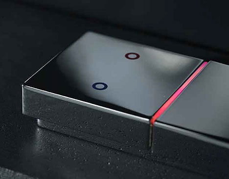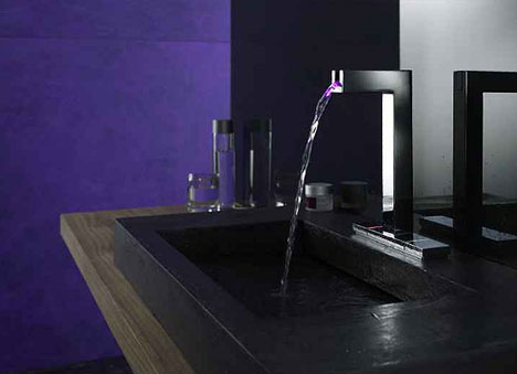 This ambient lit faucet caught my eye when I was doing some furnature shopping for my place, and has been on my mind ever since. It appears to be a rectangular faucet, but remove the top of a spigot, and the new shape creates a small-scale canyon, add backlighting and you’ve got ambient water fittings. Germany’s Hansa is responsible for the Hansacanyon, and added LEDs that change color as a function of water temperature so you can see when it’s hot or cold. Also included is precise temperature control, and it can be fitted for sinks, baths and showers. Its also got some sick matching accessories.