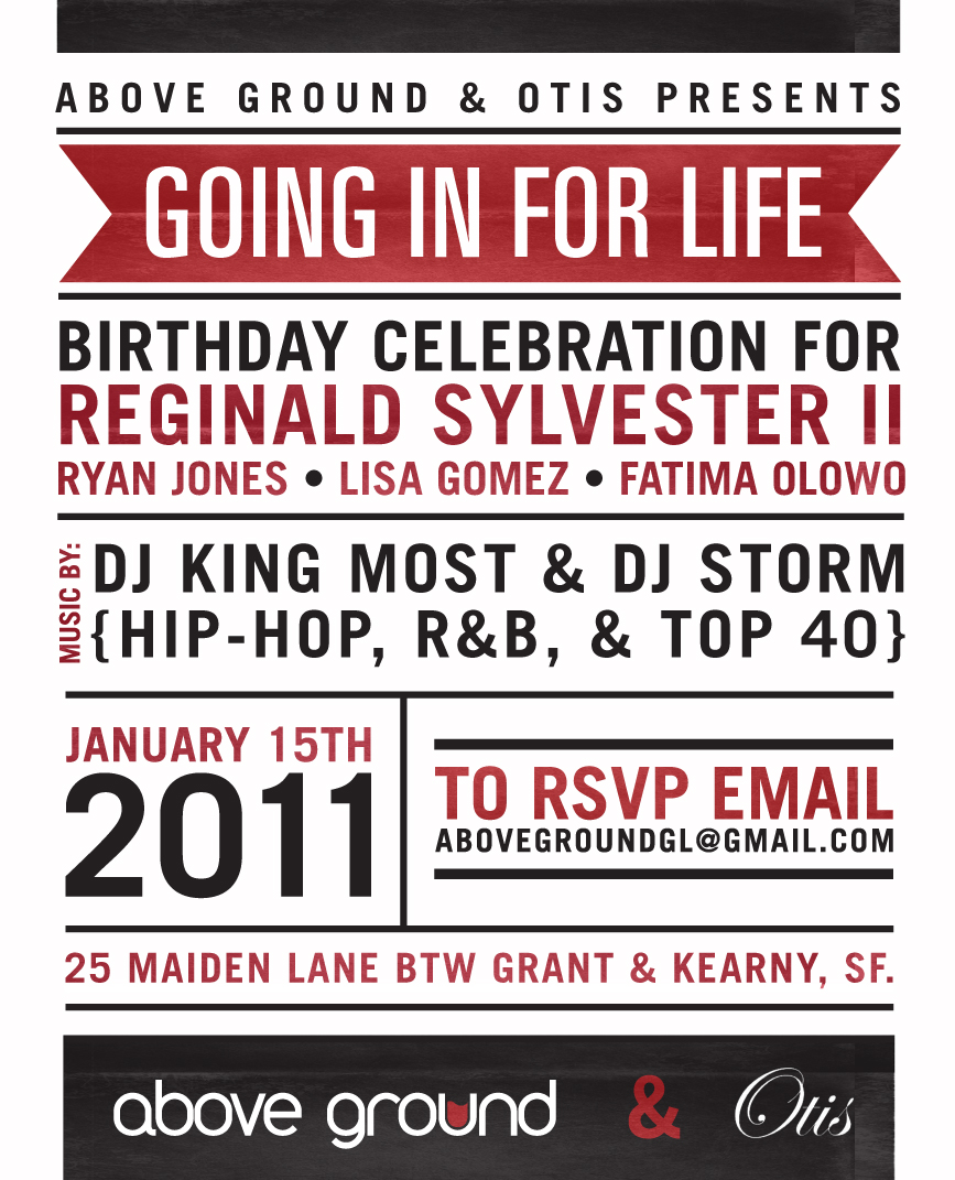 For years I’ve wanted to spin a birthday party for any of my best friends. (Unfortunately, we all tend be knee-deep in some business venture that requires us to remain sober on our birthdays.) This year however, Reginald Sylvester broke the tradition, and decided to have his birthday celebration over at Otis in downtown San Francisco along with Ryan Jones, Lisa Gomez, and Fatima Olowo. So if your in the area, come by and party with us, the Above Ground promotional team, DJ King Most, and the Otis staff.