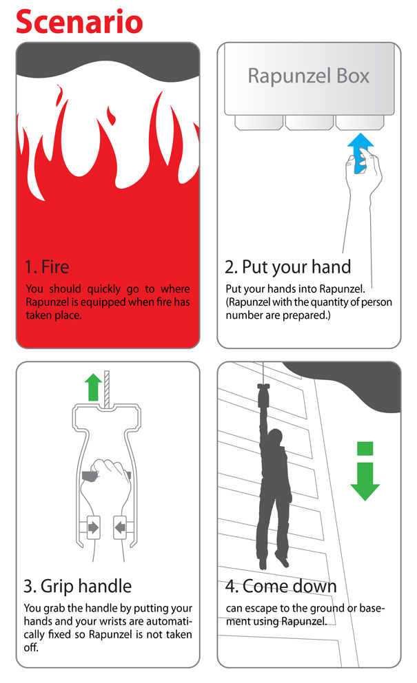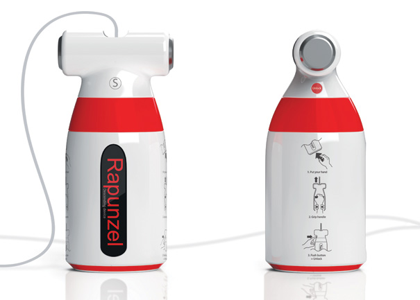 You can easily mistake the Rapunzel for a canister, instead its an easy-to-use safety-descending device. Designed by SADI student Sin Sun Ho, this safety line can be used in highrise buildings. You more or less have to glide down the side of a wall (Batman style), holding onto its secure wrist capsule design.