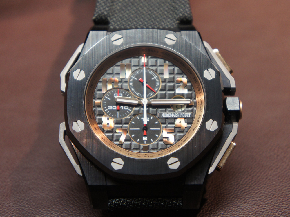 Inspired by the Man’s onscreen roles as well as his human values, this piece is a perfect blend of strength and control and will be the first Audemars Piguet watch to feature an all-ceramic 48-millimeter case middle and bezel. The combination of materials, the exceptional level of finishing and the sheer sophistication of its design makes this watch a showcase of an impressive range of technical know-how. In this case, a diamond grinding-wheel removes tiny layers of material from the ceramics in order to achieve the same level of detail as on steel. Thus the ceramic case appears to glow in a variety of light conditions and gives off a shimmering high-tech glow.
