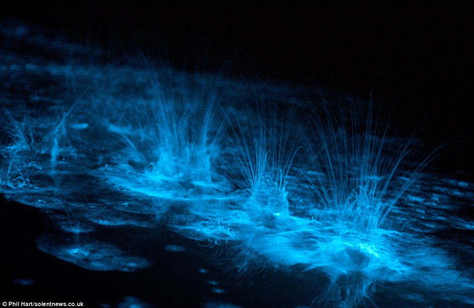 From what I hear swimming is supposed to give you a healthy glow, but these swimmers weren’t quite sure what was going on when they took a late-night dip and turned a fluorescent shade of blue. ‘It was like we were playing with radioactive paint,’ said photographer Phil Hart who snapped the bizarre sight as his friends emerged from a lake in the dark of night. The light is created by a chemical reaction called bioluminescence, which happens when a naturally-occuring micro-organism in the water is disturbed.