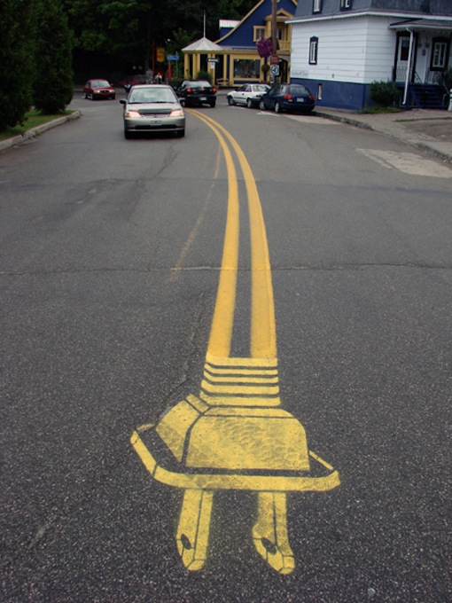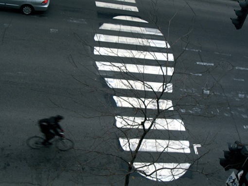 While looking up some info on Amsterdam, I came across the work of Canadian stencil artist Roadsworth (Peter Gibson), and really liked it. When it comes to something so simple, so raw, and so unique, I knew I had to throw it up. He’s been doing his thing since 2001, using stencils to adapt the existing road graphics, mainly on the streets of Montreal, initially as a protest against the lack of cycle lanes, but increasingly as a commentary on car culture, oil dependancy and authoritarianism. I’m not sure how successful it is on those counts, but as a way of injecting a little wit and lyricism into the urban landscape, it’s the sh*t. Check the method, and both of the videos on his work.