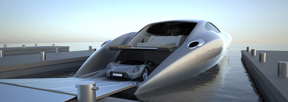 I know what you’re probably thinking… It is devilishly hard to decide whether you should get a new yacht, or just get another super car. (These are the questions the plague most of society on a Monday afternoon). A yacht is relaxing, but the car is fun. Isn’t there a way to do both? Actually, there is. Swedish Gray Design has come out with the Strand Craft 122 concept. It is an remarkable high performance streamlined 122 foot yacht. The Interior includes four double and very large staterooms, heads, reception, and salon areas – and of course comfortable crew cabins. And it has a top speed of an phenomenal 50 knots. And, it comes with a built-in garage for the “Tender.” It is a matching super car powered by a 880hp twin turbo V12 engine with a top speed of 230mph… a two-for-one package for the ages.