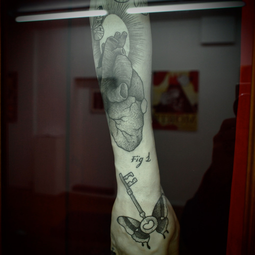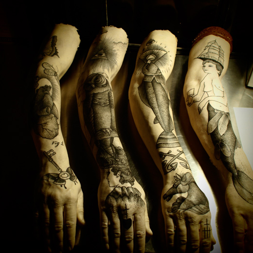 So when you think of an arm gallery, people may be a bit confused. But Guy le Tatooer (yes, it’s exactly what you think) developed an entire gallery of false arms to show off his work. These are some photos from Guy le Tatooer’s tattoo arm exhibition at the Gimpel & Muller gallery in Paris. Guy says he created them using his arm and silicon. After, he used a traditional electric system to tattoo the arms. Guy also says he wanted to show tattoo with a real vision in a gallery.