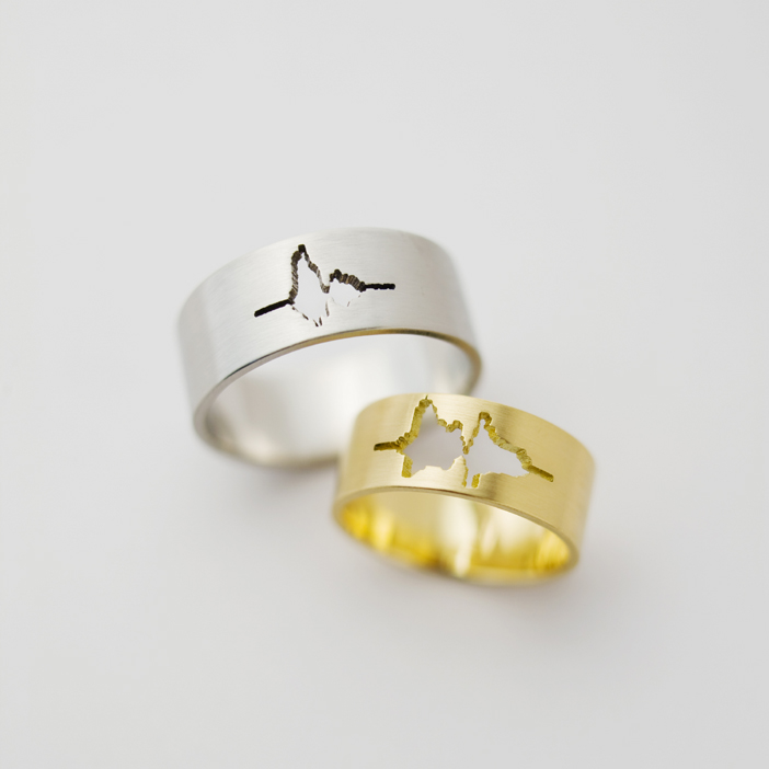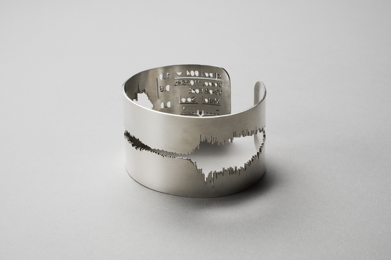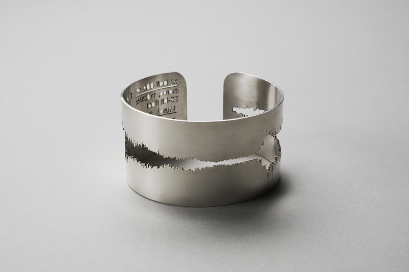 Now its definitely not everyday that I look at something like a wedding ring, and in most cases I try my hardest to stay away from them (sorry ladies), but designer Sakurako Shimizu changed my outlook on the traditional wedding band. He has an entire collection of “waveform jewelry” that’s a miraculous departure from the norm. The first thing I noticed were the rings pictured above. Those funky little designs in the rings are Literally waveforms of the other person saying “I Do”. Now waveforms may not be as exciting to a gold digger as a huge diamond, but for a nerd like myself that works with sound everyday, it’s supremely cool. Once again, I’m not planning on something as insane as marriage anytime soon. But the concept behind the rings are crazy, they come in all different types of precious metals, and if your not looking to tie the knot anytime soon, Shimizu makes more stuff out of waveforms. Check some more of his collection out below.