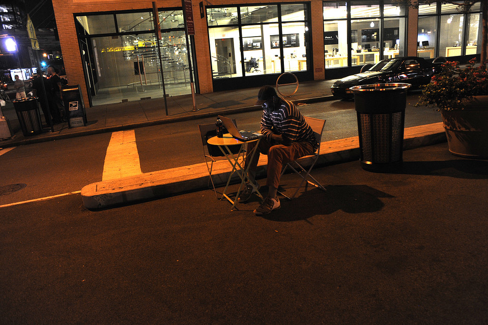 I wasn’t raised in the great city of New York, but whenever my sister and I would get bored on the weekends, we’d drive the short 20 minute into Manhattan and chill with her friends. So having been around NY for a while, I’ve seen it at all hours of the day. I was intrigued when I read that the Wall Street Journal sent several photographers out overnight to shoot the city during the hours when most of its citizens are sleeping. Here are photos of those awake when most of the city is not.