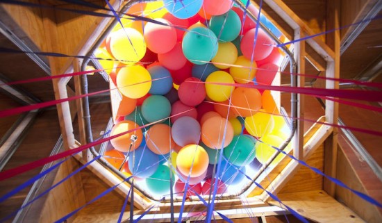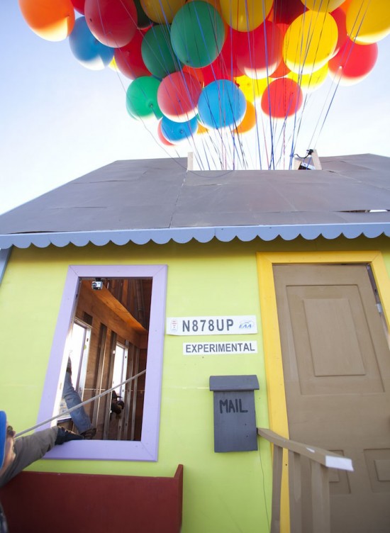 The National Geographic Channel has taken Pixar’s animated film “UP” to the test, and created a real-life version of the floating home… balloons and all. I saw the movie with one of my best friends, and have loved it ever since, so when the NGC released exclusive footage of their experiment, after a testing it out over the weekend it excited me. On Saturday, a team of scientists, engineers, and two world-class balloon pilots successfully lifted a house, using only 300 weather balloons. The house was 16x16x18. The house reached an altitude of more than 10,000 feet, and “flew” for about an hour. The experiment set a new world record for the largest balloon cluster flight that has ever been attempted. The experiment and footage is part of a new NGC series called “How Hard Can It Be?” which will air in the fall. (But don’t actually try it Kristy).