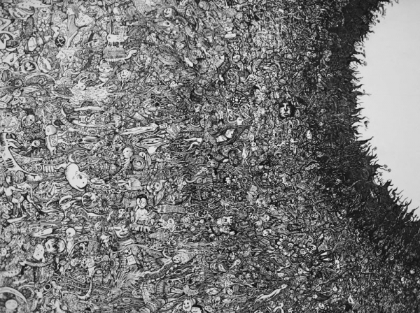 Artist Sagaki Keita was born in 1984 and lives and works in Tokyo. His densely composited pen and ink illustrations contain thousands of whimsical characters that are drawn almost completely improvised. I am dumbstruck looking at these and love the wacky juxtaposition of fine art and notebook doodles. See more of his work here, and be sure to click the images above for more detail.