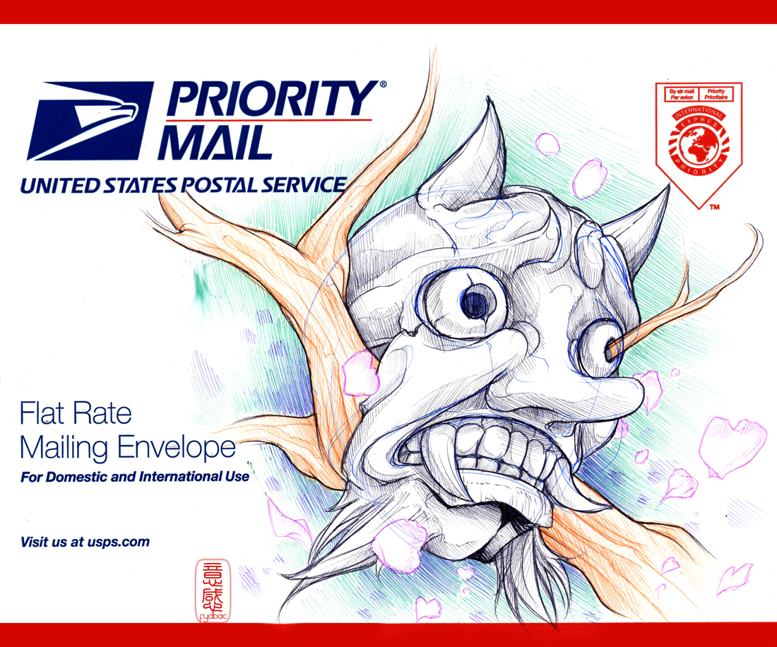 I came a cross an interesting series of pictures the other day by an illustrator that goes by the name Jainai. Apparently she likes to put her personal touch on each of the envelopes she mails to clients. The envelopes are never the same and the subject matter is always randomly made up on the spot. Every detailed sketch is an interesting piece with both simplicity and depth. Jainai also has many more excellent works which can be seen at her deviantART.