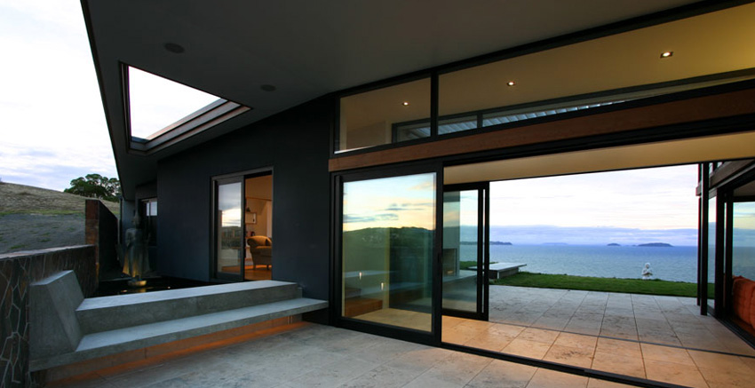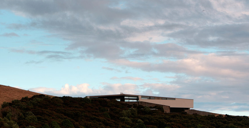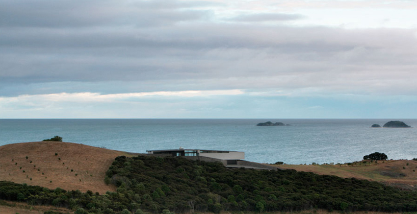 On a remote ridge stretching between the Hauraki Gulf and the breathtaking landscape of Waiheke Island sits the Korora House, Daniel Marshall Architect’s latest project. The New Zealand based firms’ driving approach to building the Korora House was to “work within the contour of the ridge, as an attempt to minimize the impact on the landscape.” The team was successful at their approach, co as each element of the house fits tightly within the curves of the rolling hills. Marshall was extremely methodical when he incorporated local weather conditions into the design of the home. “The plan form of the house is spaced between two courtyards, which are bridged by a gabled roof stretched across the long axis. The courtyards provide the opportunity to shelter from either of the two dominant winds.” Korora is built with materials of local interest, Marshall explains that “the materiality of the house draws on two architectural conditions of Waiheke, the masonry forms were inspired by the gun emplacements of Stoney Batter. The use of cedar and plywood reflect precarious weekenders of the island’s past. The combination of the home’s materials and it’s intricate built are what make the Korora House absolutely beautiful.