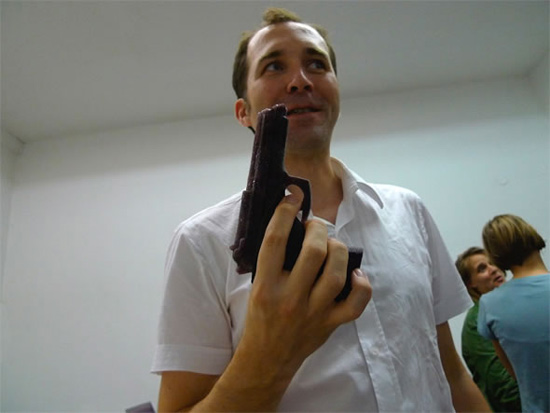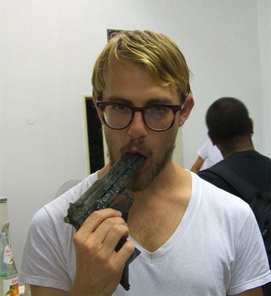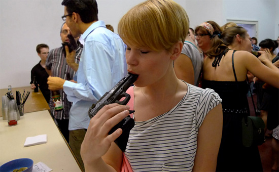 At first glance it looks like they’re putting real guns in their mouths, but fear not they are eating edible ice guns. They all have different kinds of flavors–cola, cherry, licorice and black currant. They are an addition to the first 50 tinted ice guns that Florian Jenett and Valentin Beinroth made and placed in downtown Frankfurt a few years ago. These edible eatables where exhibited at an art show called “Freeze Revisited”, and their existence certainly shocked a lot of people.