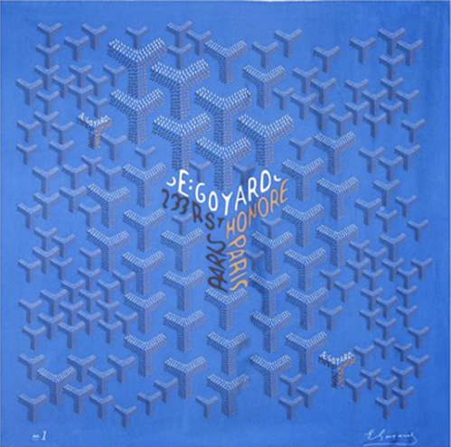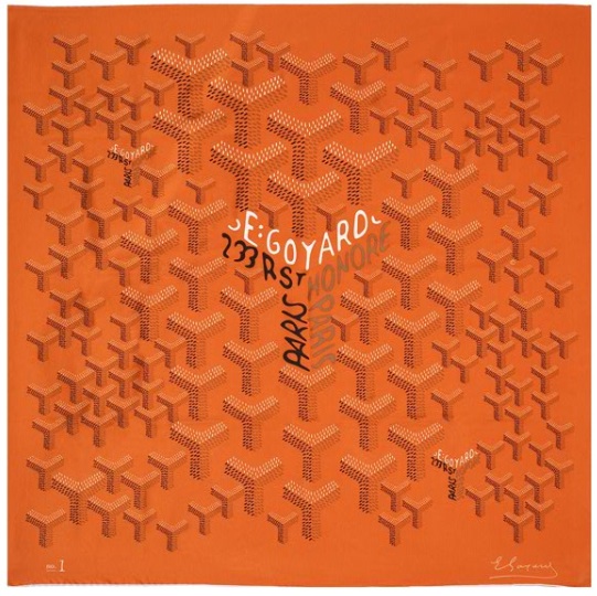 French luggage maker Goyard have released a selection of scarves in their first foray outside of luggage and travel accessories. The scarves are made of fine silk and are hand printed with an artisitc interpretation on Goyard’s signature “Y” chevron pattern. There are 4 scarves in blue, orange, white, and pink colorways that match pieces from the Goyard luggage line.