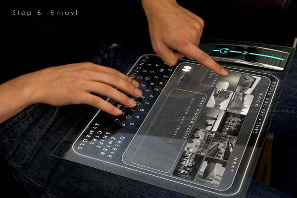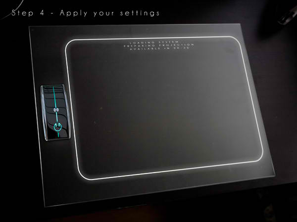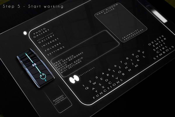 This concept computer-of-the-future by designer Jakub Záhoř allows the user to operate the device anywhere they can find a glass surface. The user simply attaches the central unit to any glass surface like a window or coffee table, switches on the power, and watches their system light up before their eyes. The display appears as an interactive hologram on the glass that the user merely has to touch to operate. It also makes for an easy, take-anywhere way to project photos and presentations or stream movies. Windex not included.