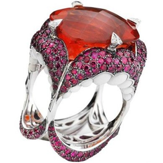 Stephen Webster, in characteristic flamboyance launched The Seven Deadly Sins collection in London’s Old Vic’s tunnels under Waterloo station. Look all seven rings and I dare you to tell which is your Deadly Sin. Webster presented a collection of rings, a very original name “The Seven Deadly Sins.” There are seven human vices: pride, envy, gluttony, greed, sloth, wrath and lust. The concept is super sick, and the rings themselves are exquisitely constructed. Check the method. (Note, the name of the ring is below the picture.)