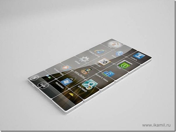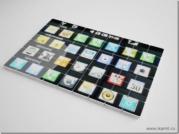 The attention-grabbing concept phone has two elements: dynamic and microphone. So, either design can be a mini cell phone sized 22mm X 44mm X 6mm or a tablet with a maximum size of 1.5m X 2m. The tablet is capable of responding to wireless communications like Wi-Fi. Mobikom’s key elements have programmed buttons while others have been devoid of them. Each element has its own power supply and computing processor. A user can feed individual parts with a SIM card and store all necessary details in the phone memory. There are apertures on the lateral surfaces in the middle of the fixing tapes, which can be used to craft new forms. A special adapter is required, which will fuel the touch screen with necessary kinetic and thermal energy for successful operation. The productivity and working of Mobikom increases when more elements are connected to the device. So, enjoy the benefits of a mini cell phone and a full sized tablet with Mobikom.