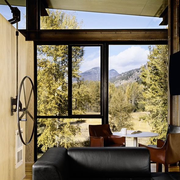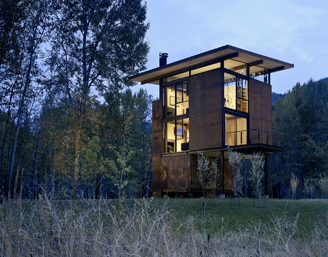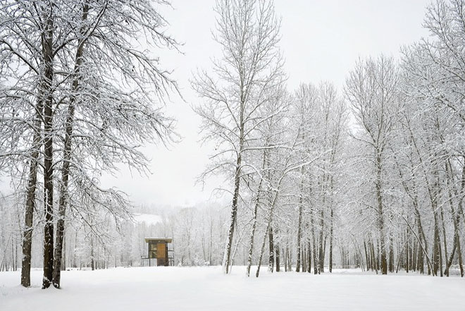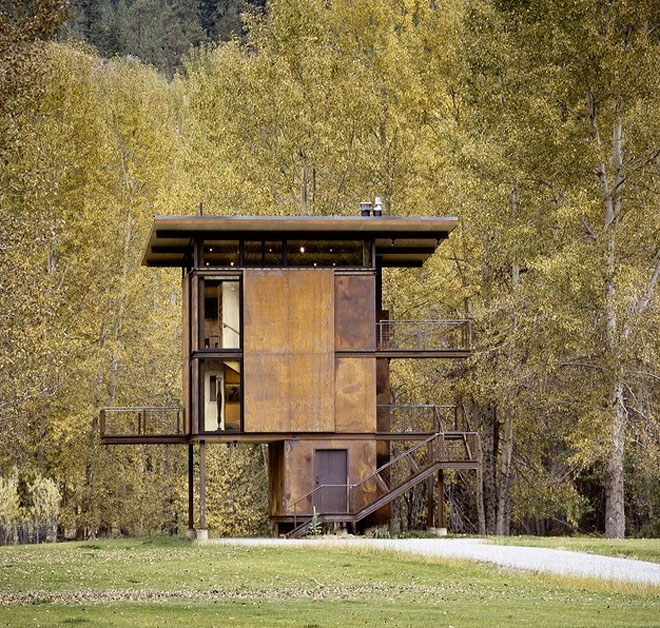 Built in 2005 in Mazama, Washington, and designed by Tom Kundig, the Delta Shelter is 1,000 square feet of modernist retreat. It measures 20×20, sits three stories tall, and has 10×18 steel shutters that are opened or closed via a hand-cranked wheel. The ‘Weekend Cabin’ isn’t necessarily about the weekend, or cabins. It’s about the longing for a sense of place, for shelter set in a landscape…for something that speaks to refuge and distance from the everyday. Nostalgic and wistful, it’s about how people create structure in ways to consider the earth and sky and their place in them. It’s not concerned with ownership or real estate, but what people build to fulfill their dreams of escape. The very time-shortened notion of “weekend” reminds that it’s a temporary respite.