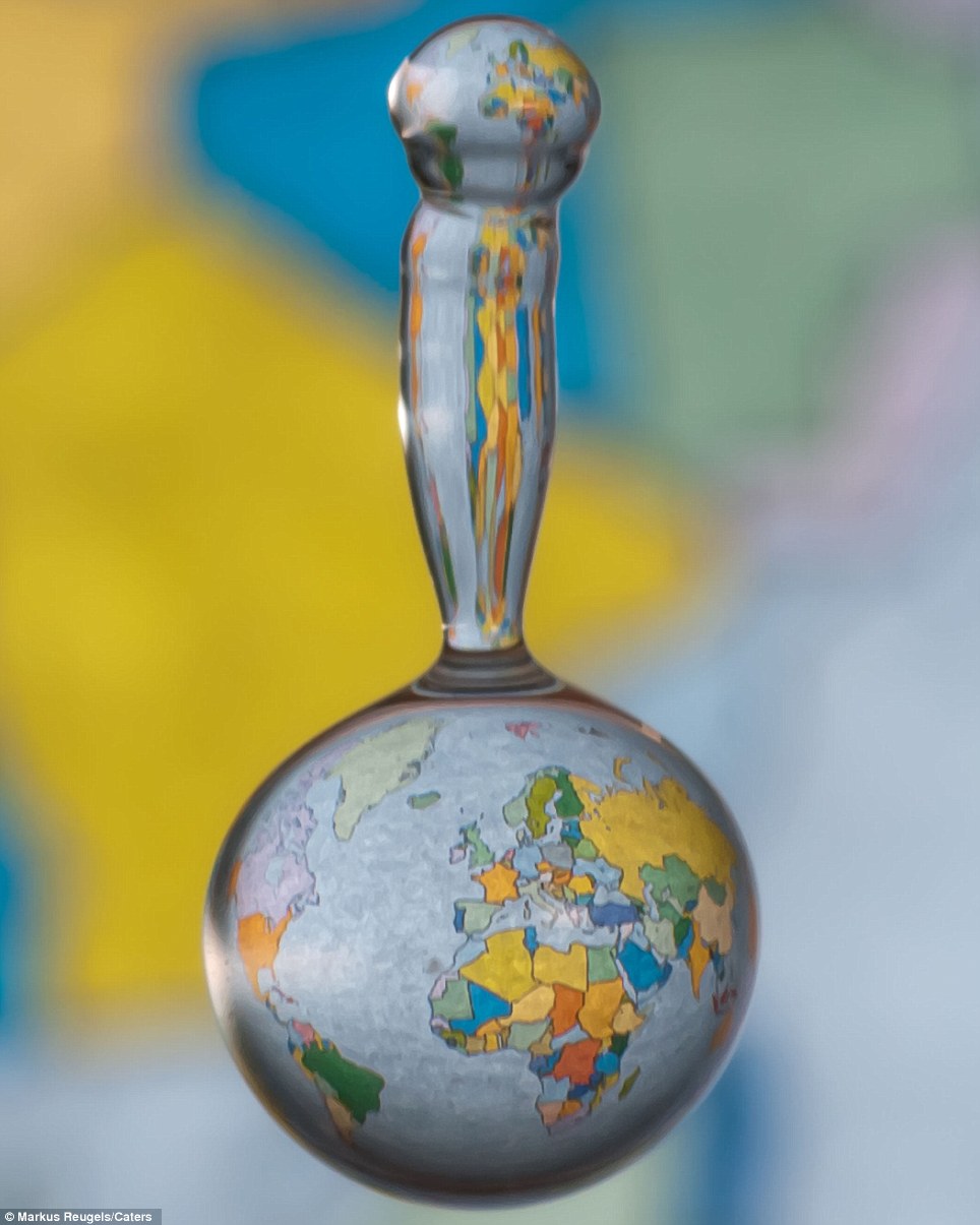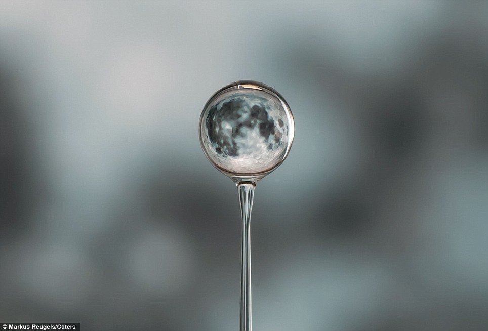 These incredible images are little drops of magic, capturing iconic images within a single droplet of water is something photographer Markus Reugels spends hundreds of hours painstakingly trying to capture. Mr Reugels, from Schweinfurt, Germany, can spend weeks agonising over snapping the image just at the right moment… but the results are stunning. In one of his images, an image of the earth from space sits neatly inside the water droplet. In another, the moon is brought into focus by a single drop of water, the flat image of the background distorted into a spherical result that appears uncannily true to life. Check the method below.