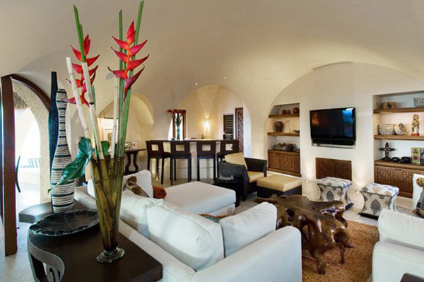 This wildly magnificent villa is located at the very tip of Punta Mita, the most northern point of Banderas Bay with views of the Pacific Ocean and across Banderas Bay to Puerto Vallarta with the Sierra Madre Mountains in the background. Casa El Destino, completed in 2008 by Mexico-based architecture firm Possenbacher Design, with interiors completed by California based design firm Barbara Page Interiors. This oceanfront home is a blend of contemporary and colonial Mexico, consisting of 18,000 square feet of indoor and outdoor living featuring seven bedrooms and nine bathrooms. I’d just be down to relax in the living room with adjoining wet bar, dine in the dining room or enjoy the outdoor eating areas. Girls can lounge under the grand Palapa, take a swim in the ocean front infinity pool, or enjoy a workout in the fully equipped gym. All in all this villa comes out to a rate of $7,600-$11,000 per night.