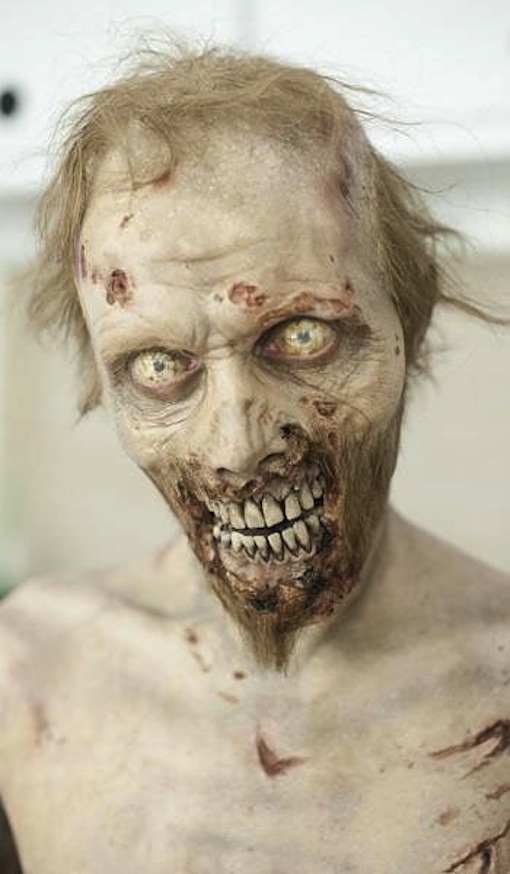 1. The “Walking Dead” makeup team fits actor Kevin Galbraith with a bald cap and accentuate his high cheekbones to make them look sunken.