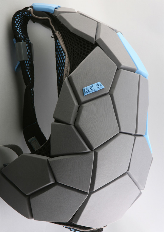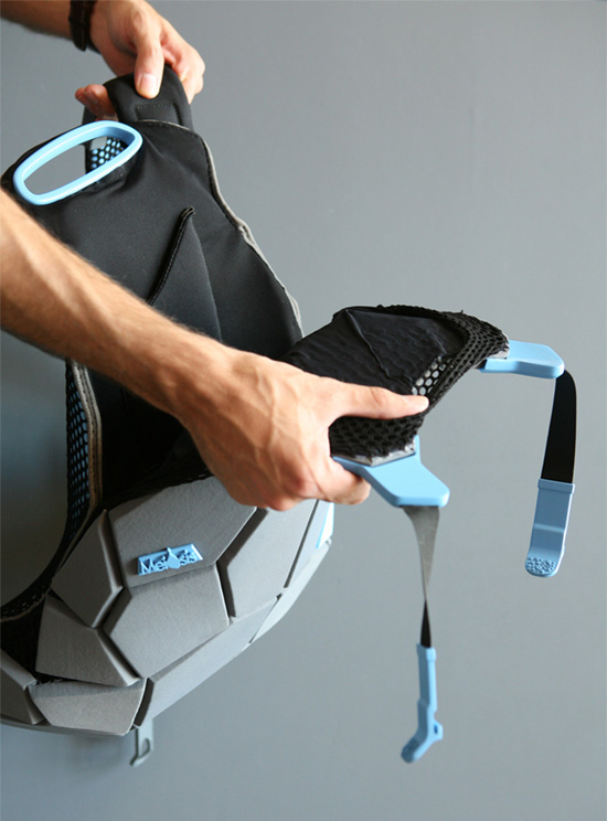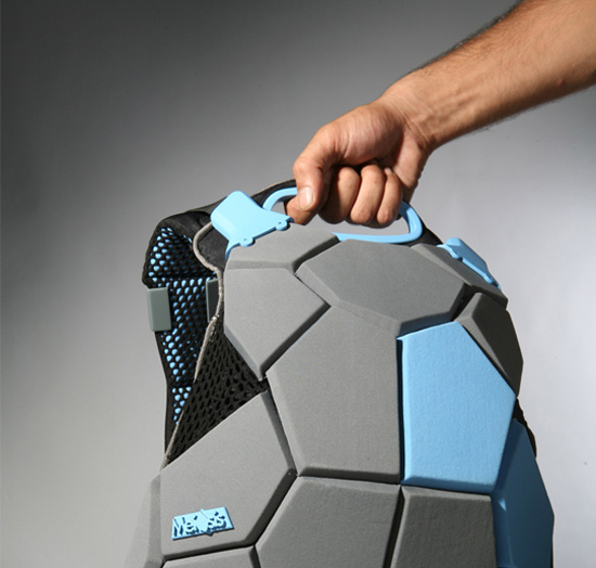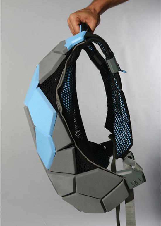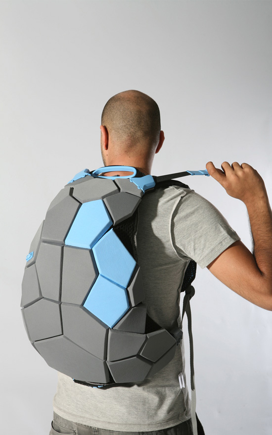 The Meiosis backpack designed by Davidi Gilad, is an equipment bag which was developed to utilize the physical properties of the elastic materials in which the bag is made. Sounds complex, but its just a complicated way of saying the bag is strong. It is constructed from rugged geometric polygonal shapes that harness the tension of the elastic fabrics, which is gained by attaching the rugged parts to the while they are stretched on a frame. When released, the geometric shapes prevent the fabrics from shrinking back, resulting in the bag’s form and structure. The tension and flexibility of the design maintains its shape while it is opened and closed. The bag’s strength and shape is maintained when opening and closing, and it just plain looks cool.
