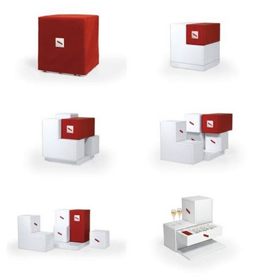 The Ritual Box transforms from a refined cube to 5 sophisticated modules holding a champagne bucket, 6 “tulipe” champagne glasses, a service of 6 forks and spoons designed by Guy Degrenne, 6 plates and 6 verrines made by Siléa and Finally two chandeliers by Villeroy & Boch to illuminate your ritual sitting on red pillows. The gift box also includes the iconic red leather draped sword that can be used to saber the bottle. Edited to 10 limited editions over the world, the ritual box is available on demand or at Colette for5,000€
