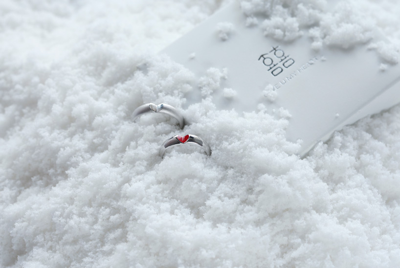 Whether for friends or partners, let someone ‘take another little piece of [your] heart‘ with the ‘give you my heart’ ring by Hong Kong’s Innopark Design Studio. two well-placed cuts cleverly transform the continuity of a sterling silver band into a small inset heart shape, left either unfinished or plated in red. They’re currently on the market for $78.