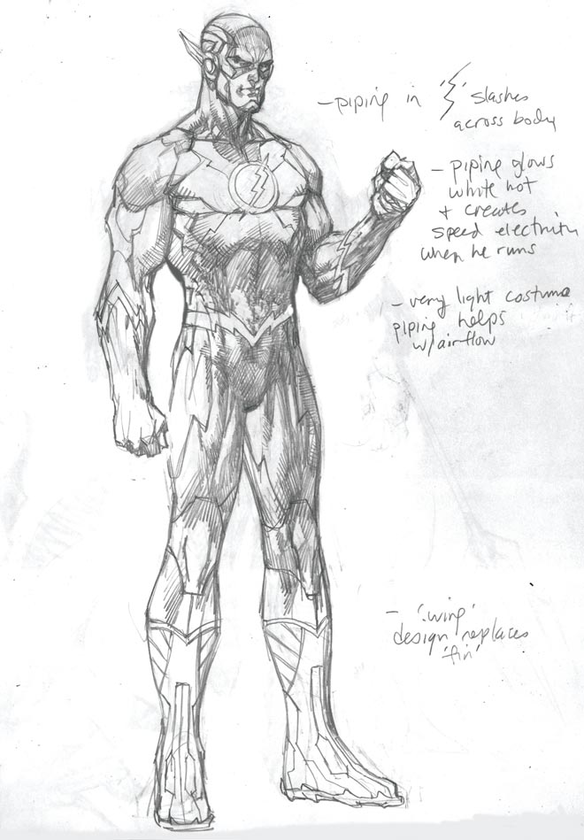 Velocity: Flash’s superspeed is depicted by electricity flares that spark off his body.