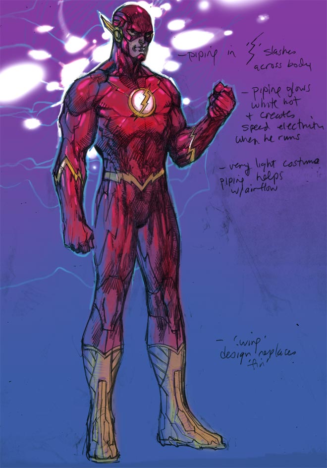 Trim: When Flash runs, his piping glows. The faster he goes, the hotter and whiter it gets.