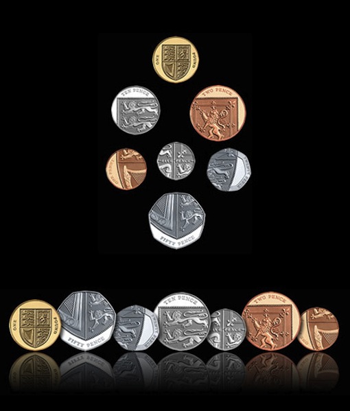 Great Britain is set to change their change. Their Royal Mint just announced the winning designs for their coin currency refresh. 26 year old graphic artist, Matthew Dent’s heraldic design was chosen as the new face of British booty. He designed a set of clever cut-aways of the Shield of the Royal Arms. Each denomination is a part of this shield and when brought together, the shield looks complete. The Royal Arms is divided into four parts: England being represented by the three lions passant guardant in the first and fourth quarters, the Scottish lion rampant in the second and the harp of Ireland in the third, with all four quarters spread over the six coins from the 1p to the 50p. Completing the new range of coins is the £1 coin featuring the shield of the Royal Arms in its entirety, uniting the six fragmented elements into one design. Anyway you look at it, I am still six pence none the richer…