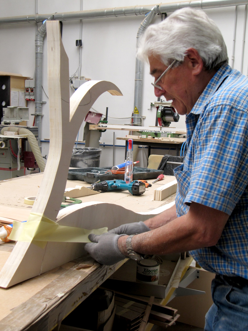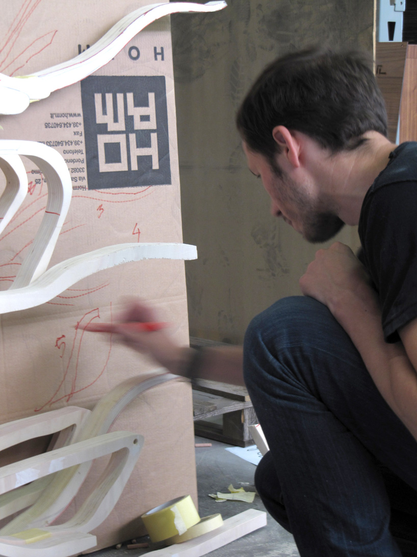 is hand carved from baltic birch plywood. it was created for the exhibition of his furniture work ‘Beautiful Premonitions’ which opens April 28th, 2011 at the Cristina Grajales gallery in New York. Originally based on the thick ivy that he used as natural shelves for his childhood garden toys, Errazuriz collaborated with woodworkers from the horm furniture company to develop the piece entirely in Italy.