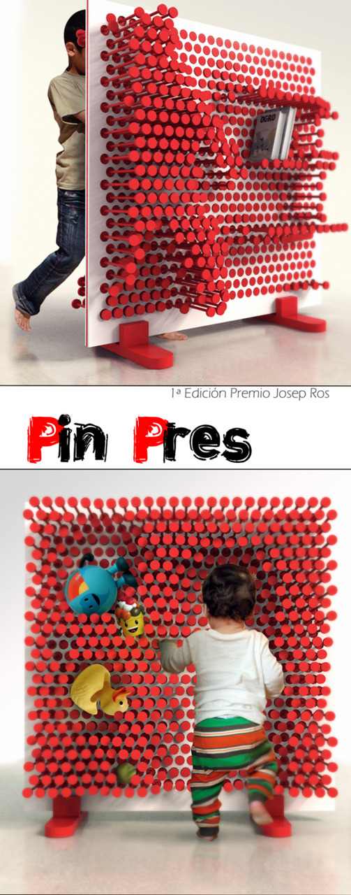 Pin Pres is a kid’s room shelf that makes the act of sorting up the room a playful experience where the shelf adopts its form to the toys, books and other things that are being stored. Its the only shelf that will make your kid actually want to clean up and declutter the room. Pin Pres has won Josep Ros furniture design competition. Super sick.