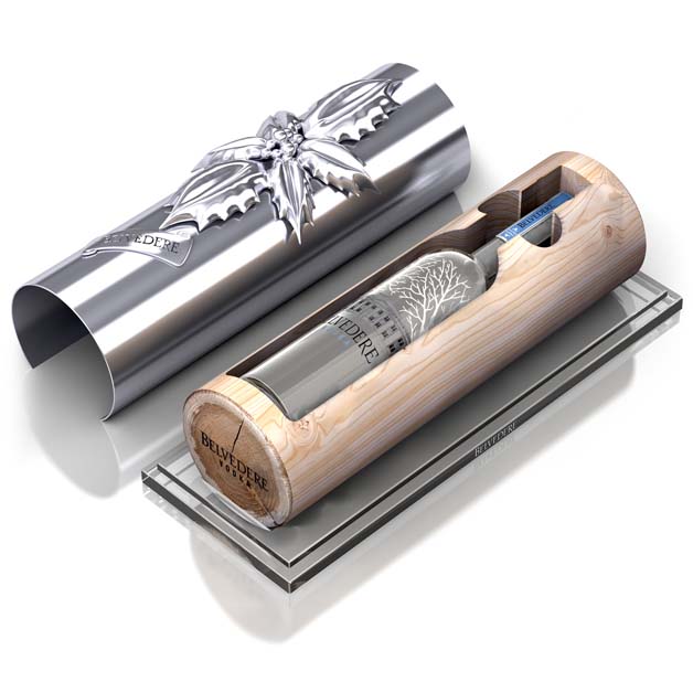In homage to the famous silver birch trees emblematic of the brand, Belvedere has chosen to “caulk” in one of them and turn into ice bucket for a perfect tasting. Under the bark of chromed metal hides a heart of tender birch, home of a bottle of Belvedere Pure 70 cl. Presented on a sleek clear acrylic base, the central part of the log behind the scenes and shows the bottle in the hollow section. This bottle removed leaves room for an ice container. The log is slender, bearing the inseparable holly leaf, while the metallic version. Buche de Belvedere Vodka is limited to only 25 pieces, available exclusively at Colette’s for 250 €.
