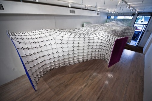 I enjoy the show the Office, and everyone needs supplies, plus I’m an art lover, so when I saw this display of ‘office supply art’ I was triply thrilled. Built in the Lower East Side Bridgegallery, CHROMAtex.me was constructed of 4,416 panels of high gloss photo paper. Each panel is a specific color and geometry to fit its unique placement within the larger form. The entire structure was held together with 17,000 standard office supply binder clips. If you live in NYC, or you’re coming here sometime soon, make sure to check it out.