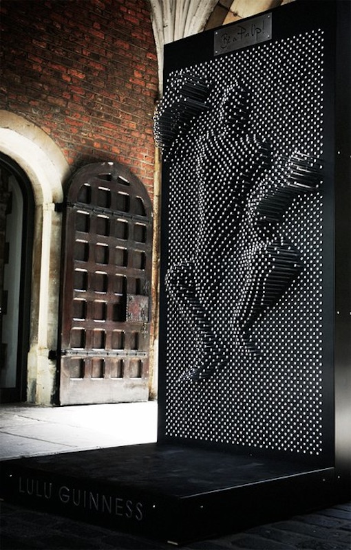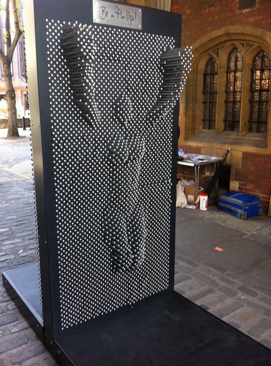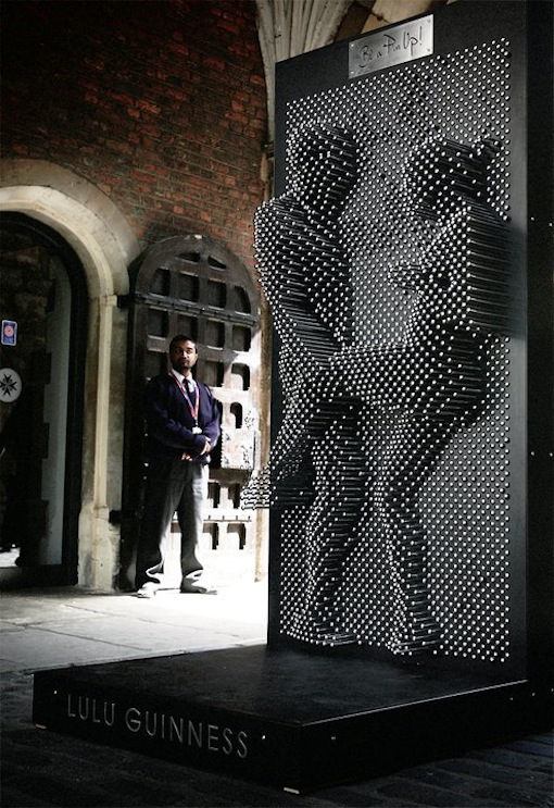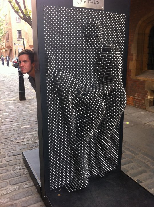 Bag designer Lulu Guinness created this human-sized pin toy as part of Clerkenwell Design Week in the UK and placed the interactive sculpture for passers-by to have fun with. Passers-by were encouraged to step up to the screen and press their bodies against the pins to set an image of themselves. Inevitably, many cheeky ideas, like the one above, were floated.