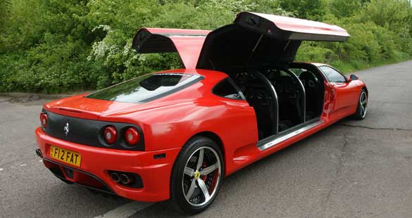 This Ferrari 360 Modena limousine was created by cutting a regular 360 Modena in half and adding seats in the middle to provide interior room for eight people. There is one large flat screen on-board plus several smaller screens set into the head rests. It also has a state of the art sound system and fibre optic disco lighting. Estimated at £250,000 ($390,000), this is the fastest limousine in the world – it can hit a top speed of 166 mph. This unique vehicle was designed By Dan Cawley of Style Limousines, then tuned to perfection by Prestige Limousines, Birmingham, England.