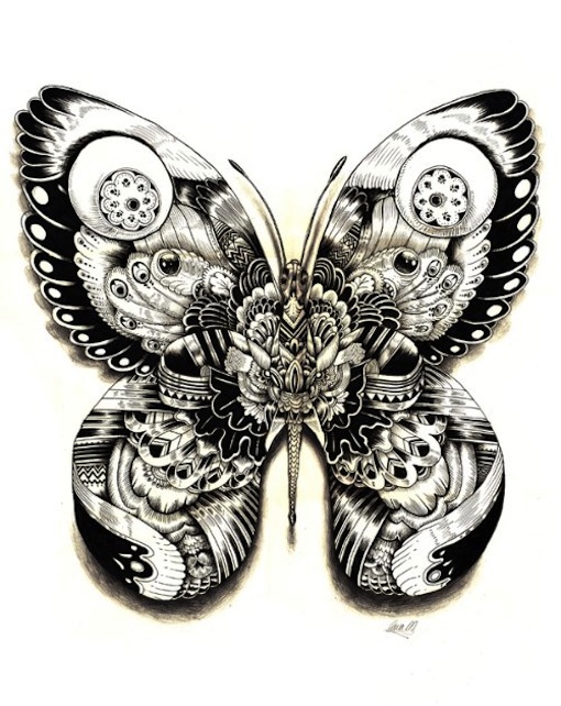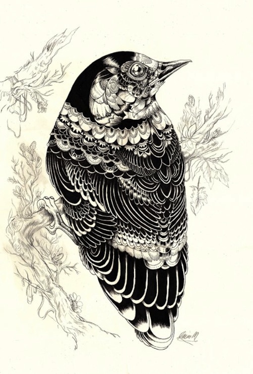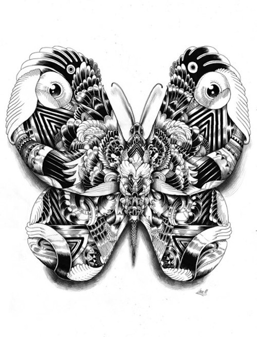 Iain MacArthur’s particular style just screams intricacy and elegance. The art seems to take the forms of birds and butterflies that are interlaced with detailed shapes, shades, and patterns. Check out some more work below. (I just wonder how long each piece takes.)