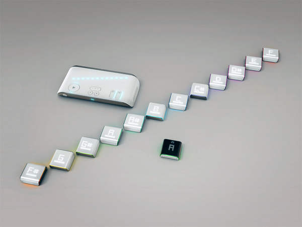 Blu is a modern musical instrument that draws inspiration from the keyboard, re-imagining keys in a modular and flexible way. Much in the same way a child learns to build structures from toy blocks, they can learn to understand tonality and song composition simply by changing the position of the modular keys around the central unit to control pitch and timing of the notes. Its smart, colorful user interface makes learning music an exciting and memorable experience.